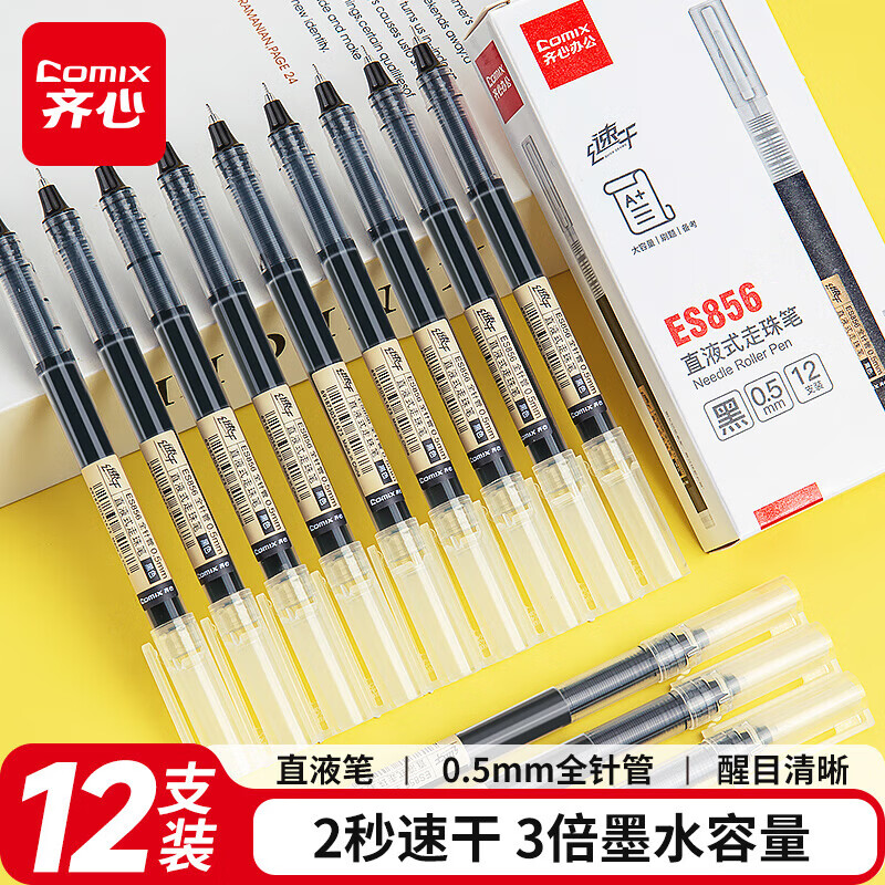 齐心直液速干笔 12 支仅需 8 元