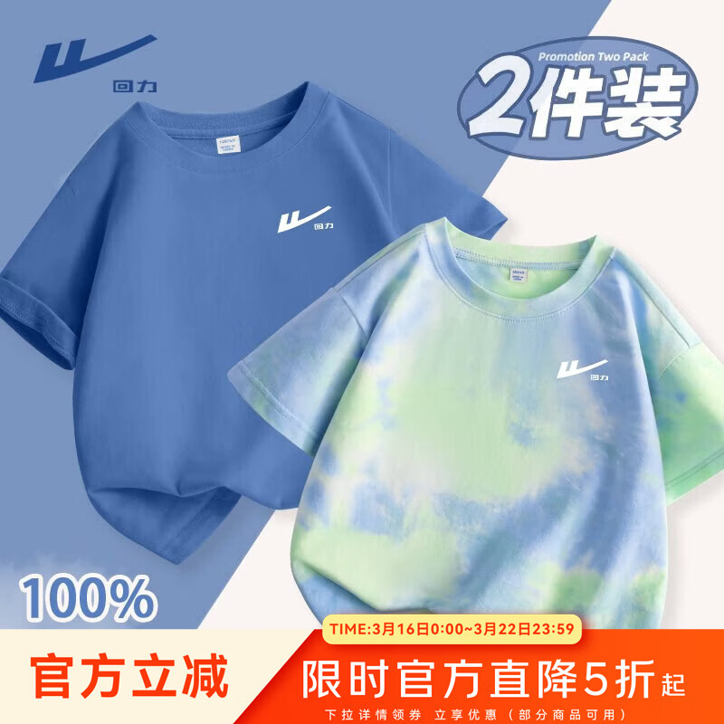 回力童装5折合集:34.95元起抢纯棉T恤/运动套装