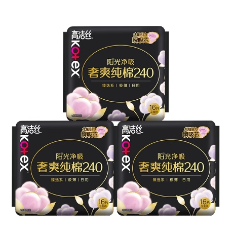 23.1元包邮!高洁丝阳光奢爽纯棉日用240mm64片