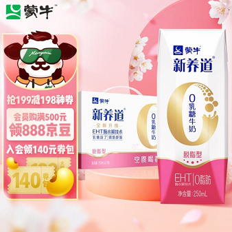 此款蒙牛新养道零乳糖牛奶,专门针对乳糖不耐受人群,将乳糖深度水解为葡萄糖和半乳糖,保留牛奶本身的营养成分,更易吸收。