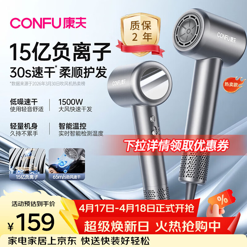 康夫高速电吹风机plus价140.8元 不伤发速干