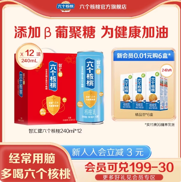 70.7元包邮!六个核桃‼240ml*12罐*2