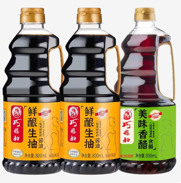 14.4元包邮!巧媳妇鲜酿酱油老抽米醋香醋调味组合3瓶
