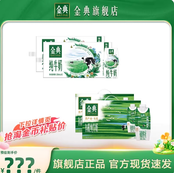 43.7元包邮!金典纯牛奶200ml*12盒*2箱
