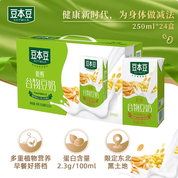 25.5元包邮!豆本豆 原味豆奶250ml*24盒