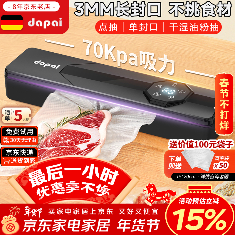 达派德国真空封口机仅34.8元包邮!下单即赠50个密封袋