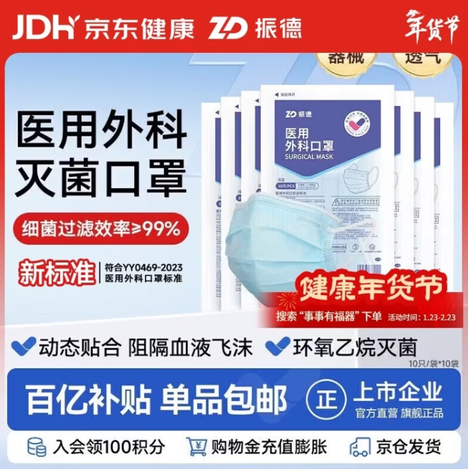 15.9元包邮!振德一次性医'用口罩100只