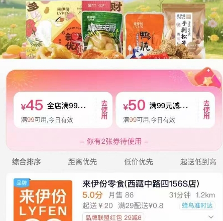 来伊份零食囤货节:全场满99减50,14件爆款仅需半价