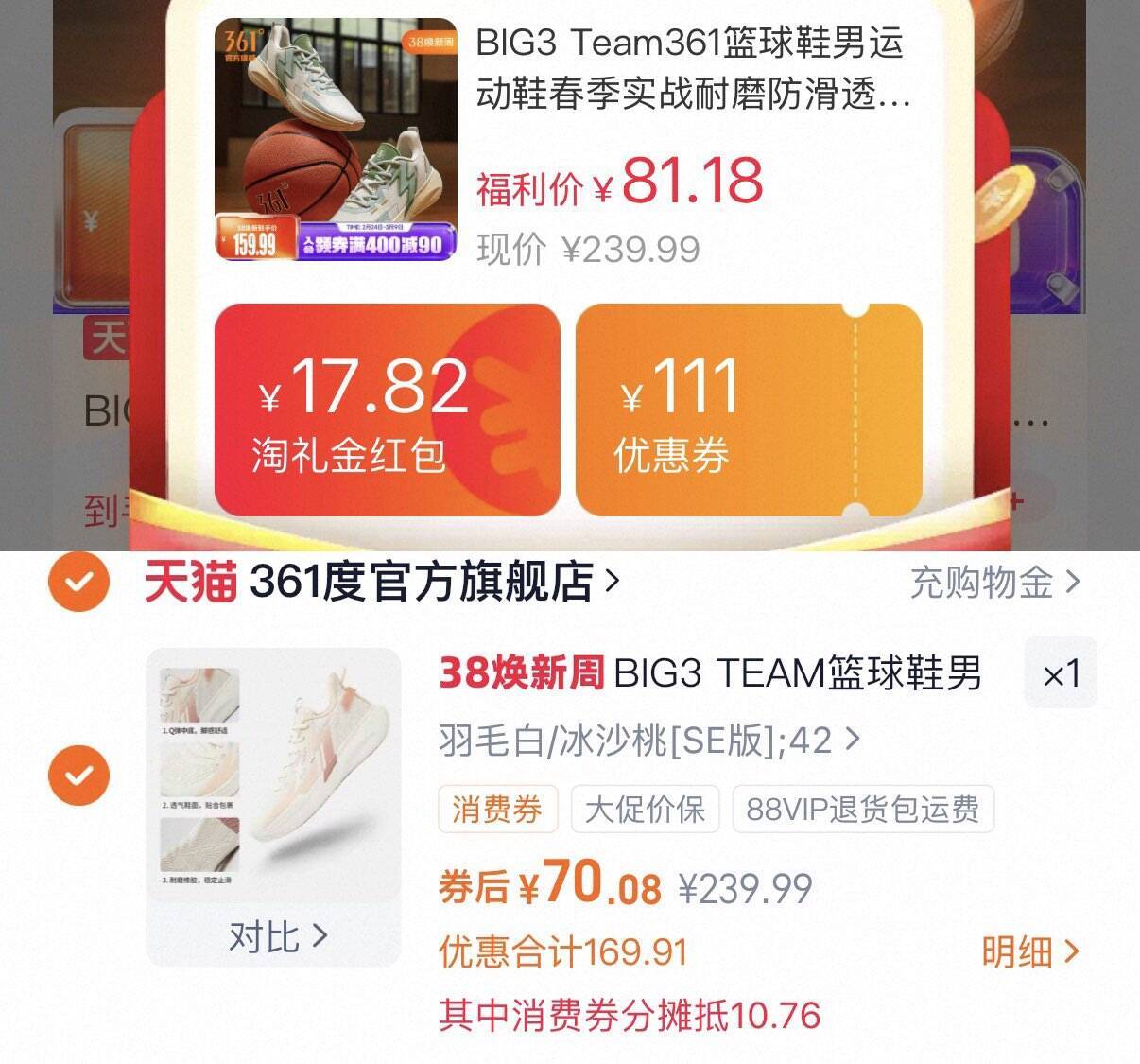 361 度 Big3 Team 球鞋仅需 70 元!手慢无