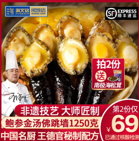 推荐理由:折合¥88.5/件,持平之前低价,2件还送南极海松茸,福州烹饪大师王德官调制,在家也能享受到正宗佛跳墙滋味。