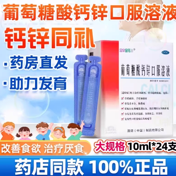 38元包邮!澳诺葡萄糖酸钙锌口服液10ml*24支