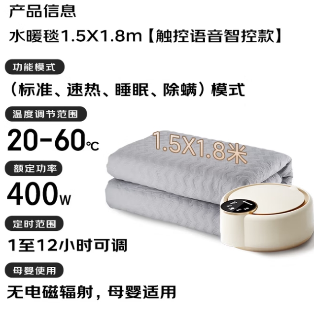 187元!艾美特 水暖毯双人电褥子家用调温除湿除螨水热毯循环床垫定时恒温电热毯1.8*1.5米TWDD05-07