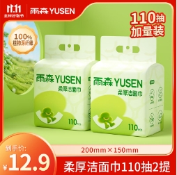 11.9元包邮!雨森·巨无霸悬挂厚洗脸巾2大提*110抽