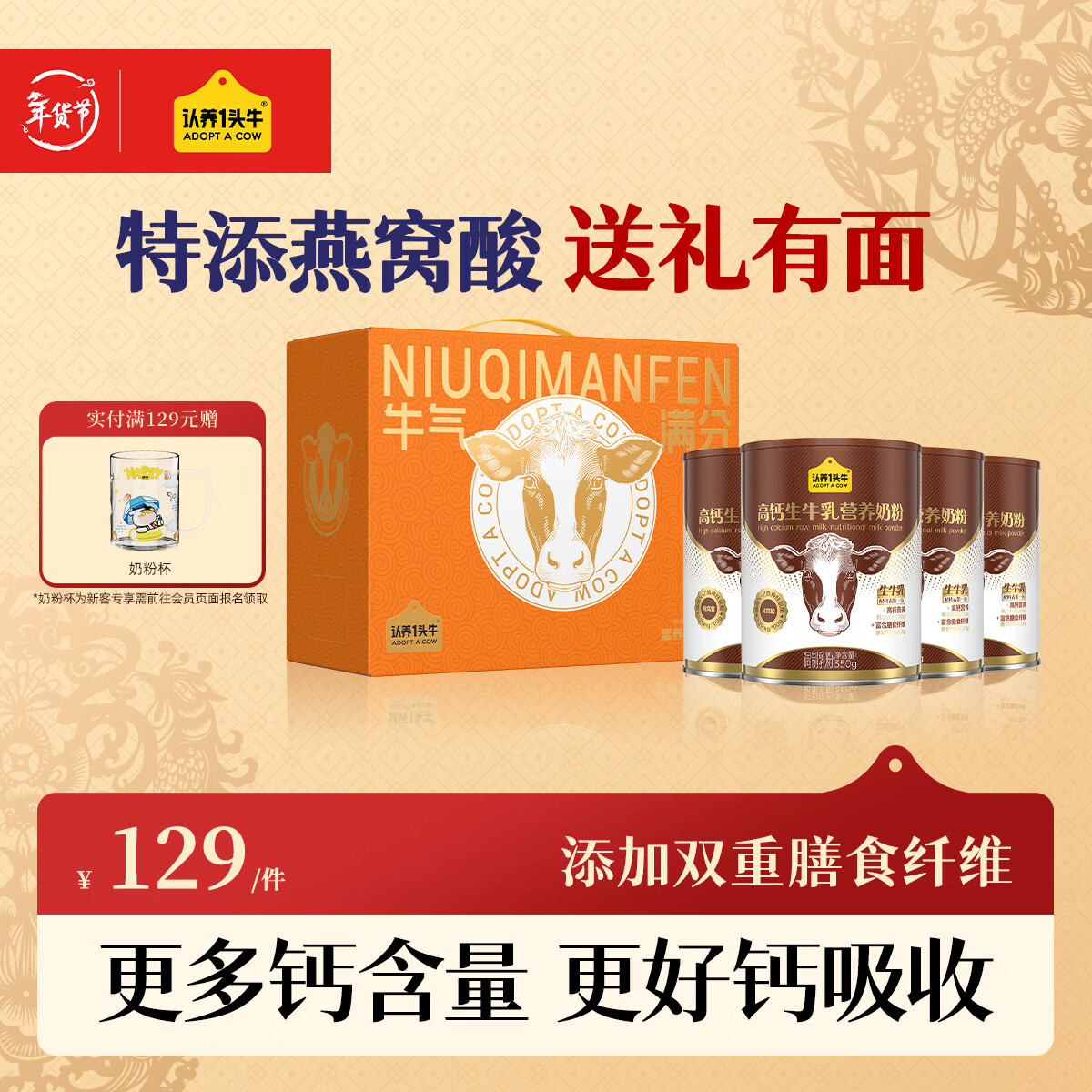认养一头牛高钙奶粉350g*4罐仅75元!年货送父母必备,限时今日