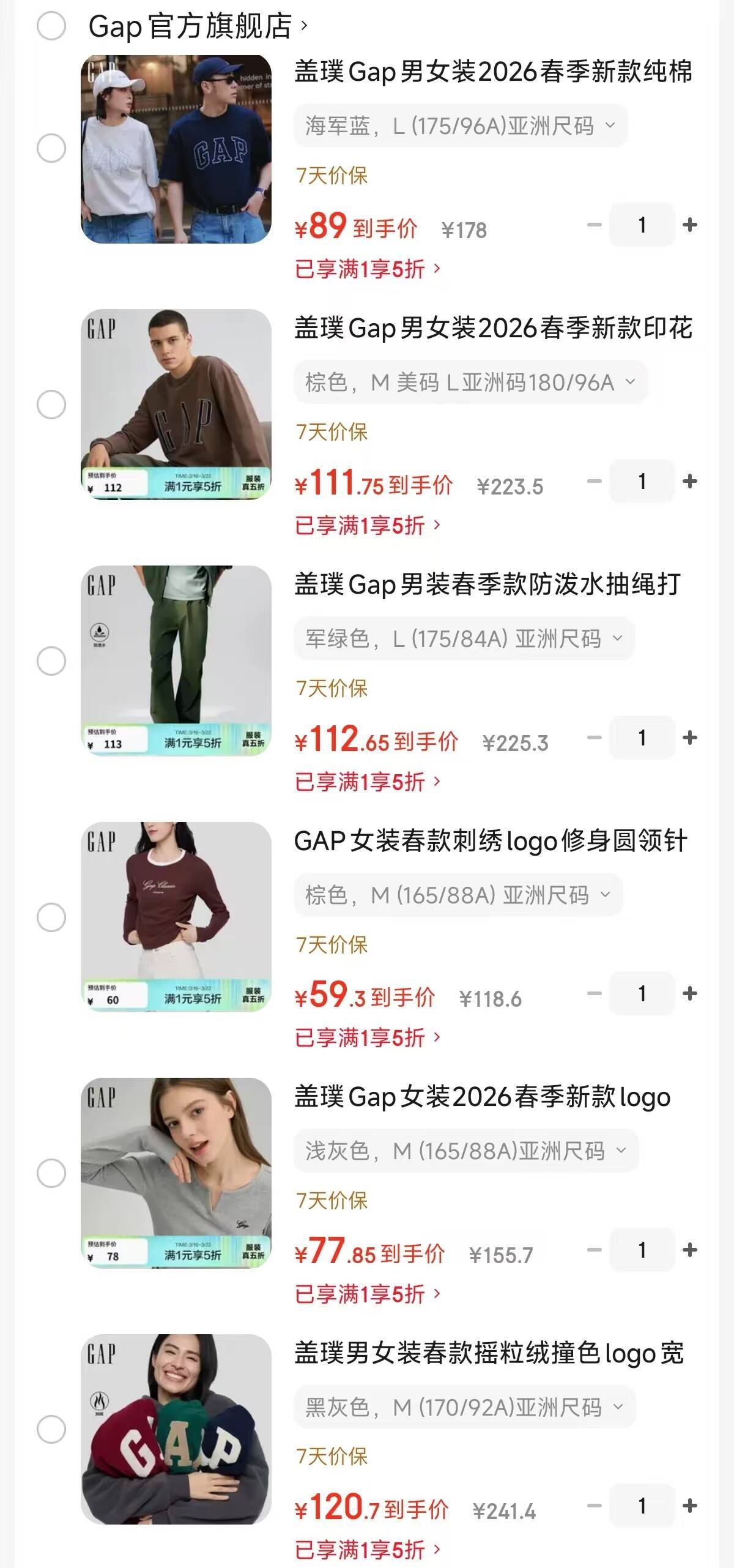 GAP卫衣/工装裤低至59元:全场五折神券速领
