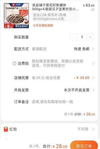 在售价63元,领5元券,叠加商家63-30,实付28元包邮。