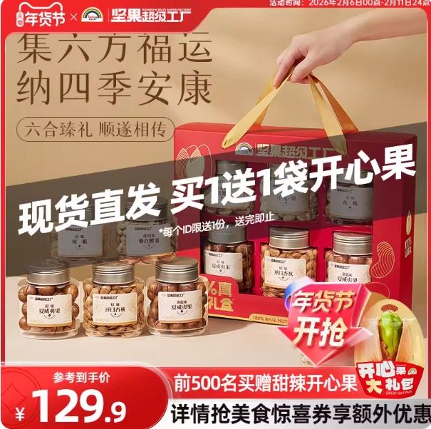90元!天虹牌 纯坚果礼盒 1100g 6罐 送开心果490g