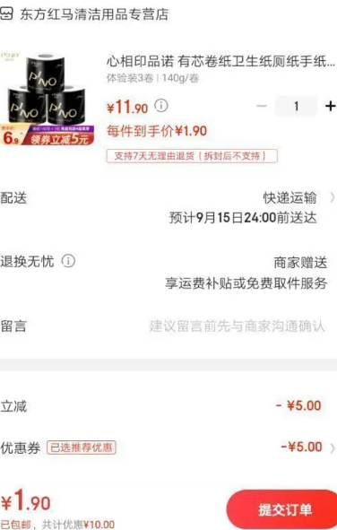 在售价15.9元,PLUS会员11.78元,叠加7-5元和领陪伴计划10-5券,实付1.9元包邮。