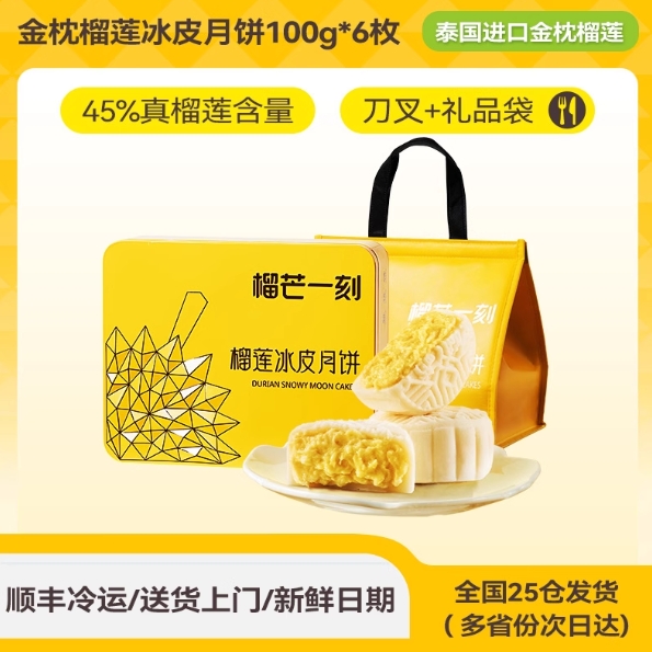 59元包邮!榴芒一刻.榴莲月饼100克×6枚