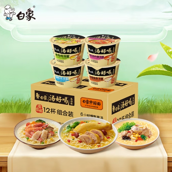18.4元包邮!白象 汤好喝mini杯泡面组合 4口味共12杯/箱