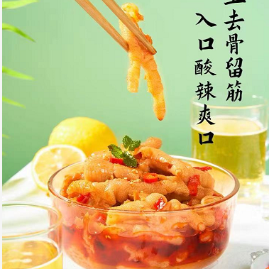 每只鸡爪均匀入味,口口留香,酸酸辣辣,唤醒你的味蕾,頭选质短爪,人工去骨,只保留软骨,每一口爽脆Q弹