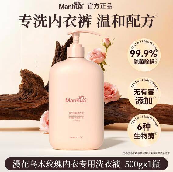 漫花内衣洗衣液6.9元/瓶,领15.9-9补贴券可拍3单