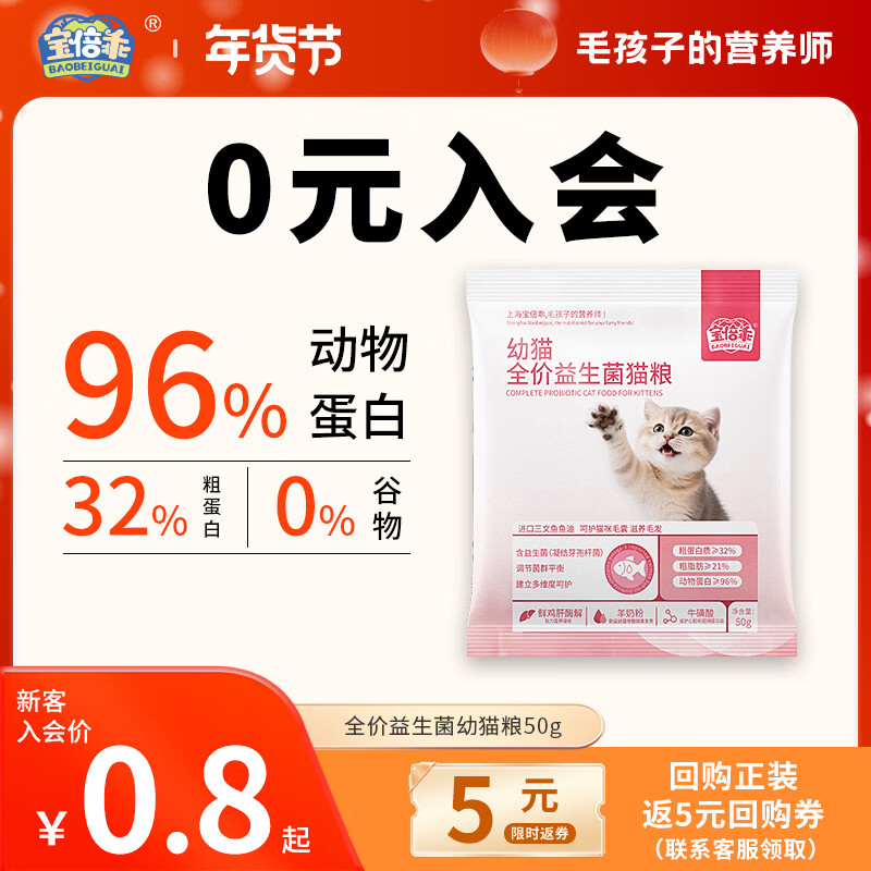 宝倍乖幼猫粮试吃装到手价0.8元