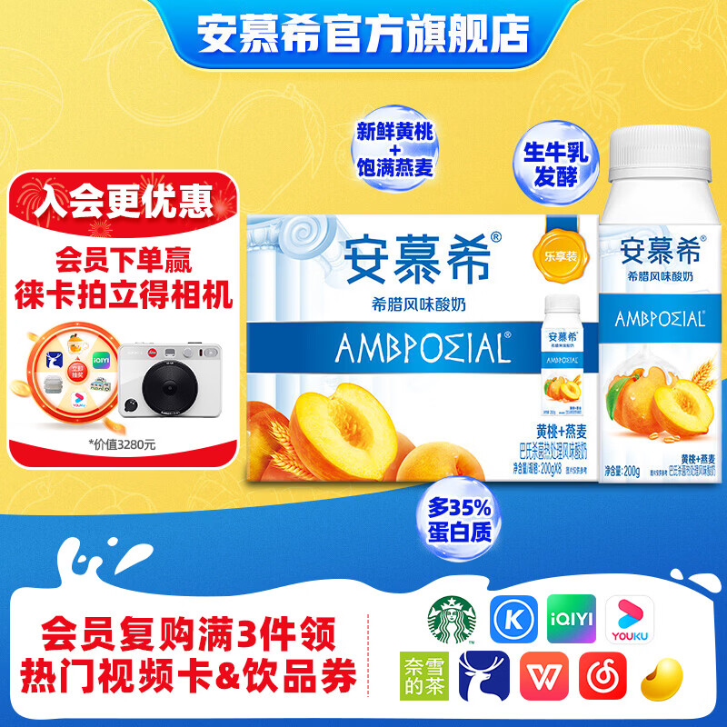 安慕希真果粒黄桃酸奶 3.6 元/盒