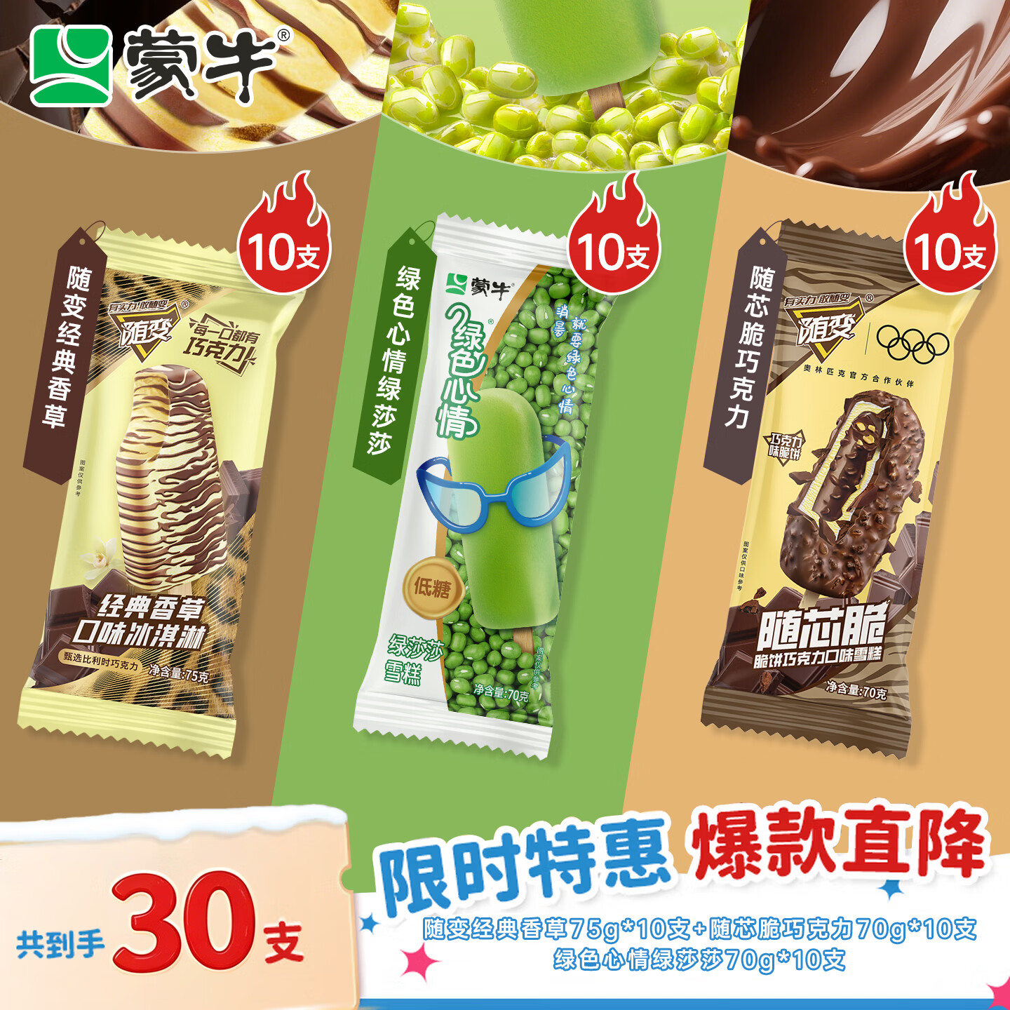 蒙牛冰淇淋雪糕组合:低至43.9元到手随变+绿色心情等20支