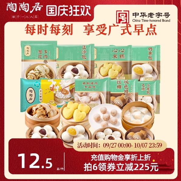 47.4元包邮!陶陶居豆沙包子馒头虾饺点心速食早餐半成品 任选5件