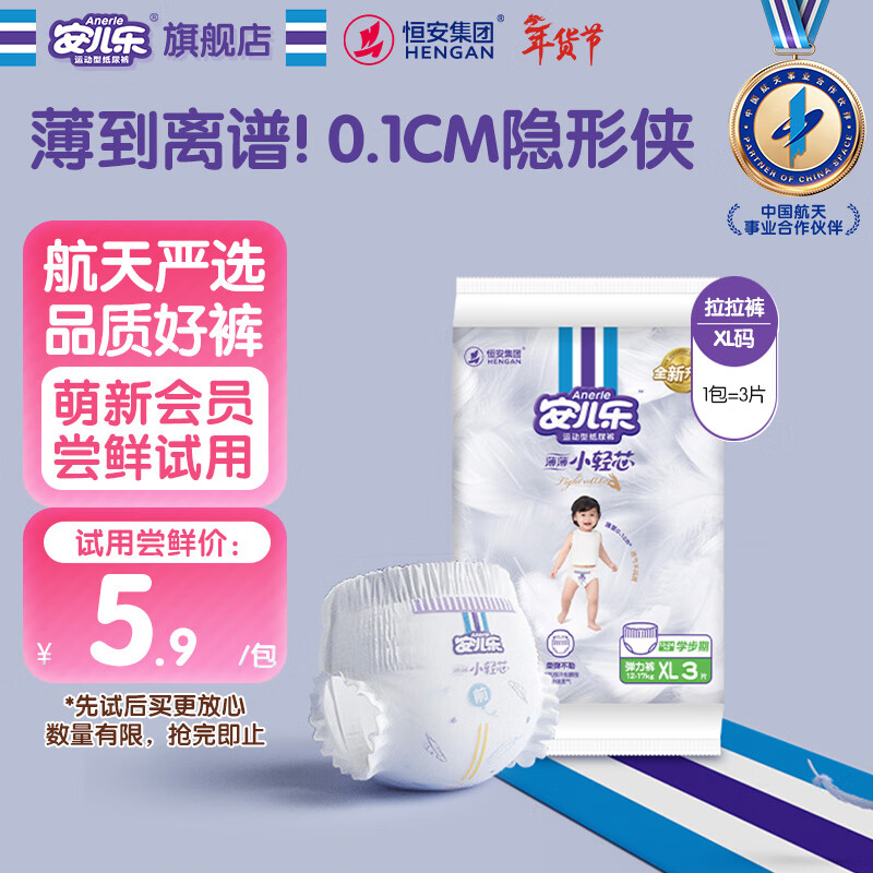 安儿乐小轻芯拉拉裤XL3片 1元抢购