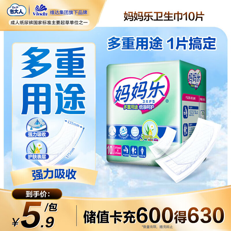 包大人妈妈乐成人纸尿片卫生巾10片,入会首单仅需0.5元