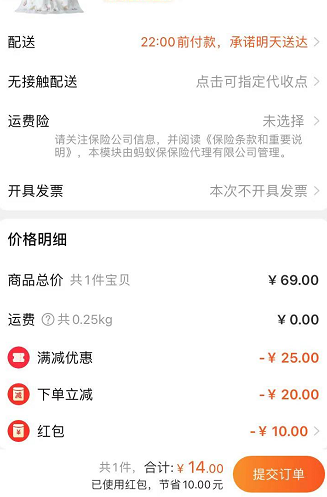 在售价69元,领20元券,下单一件减25元,叠加产品页面下方福袋10元,实付14元包邮。