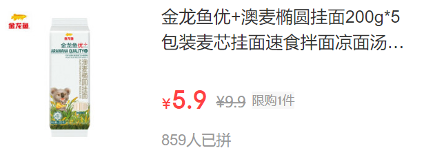 目前售价9.9元,2人拼团价5.9元,下单1件,到手实付5.9元包邮~