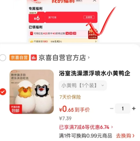 小黄鸭喷水玩具0.6元京东9.9包邮