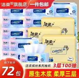71元包邮!洁柔缤纷抽纸100抽*72包