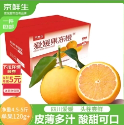14.9元包邮!京鲜生 爱媛果冻橙 净重4.5-5斤 单果120g+