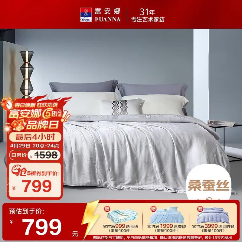 富安娜100%桑蚕丝被5折到手799元