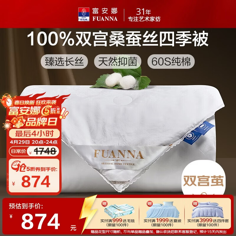 富安娜100%桑蚕丝被到手价874元