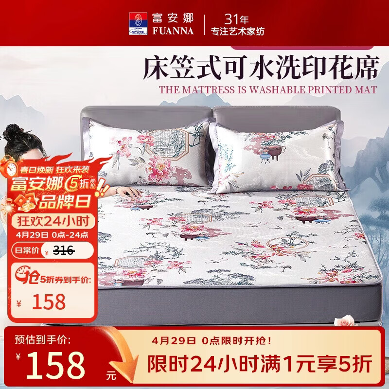 富安娜夏季冰丝席1.5*2米,6折到手仅需158元