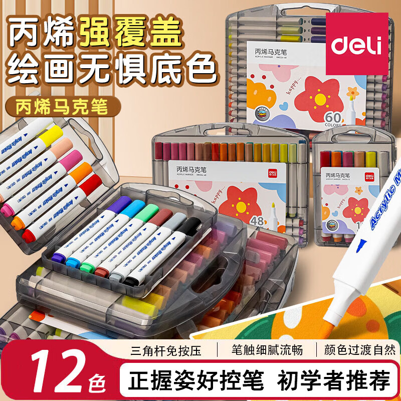 得力儿童丙烯马克笔12色 到手9.9元