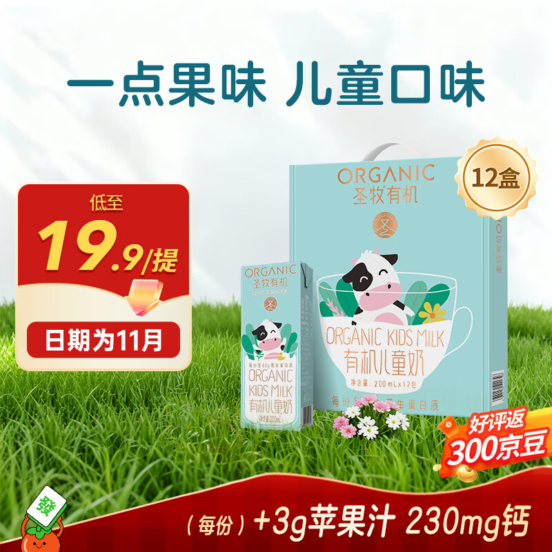 圣牧有机儿童奶 12 盒仅 19.9 元