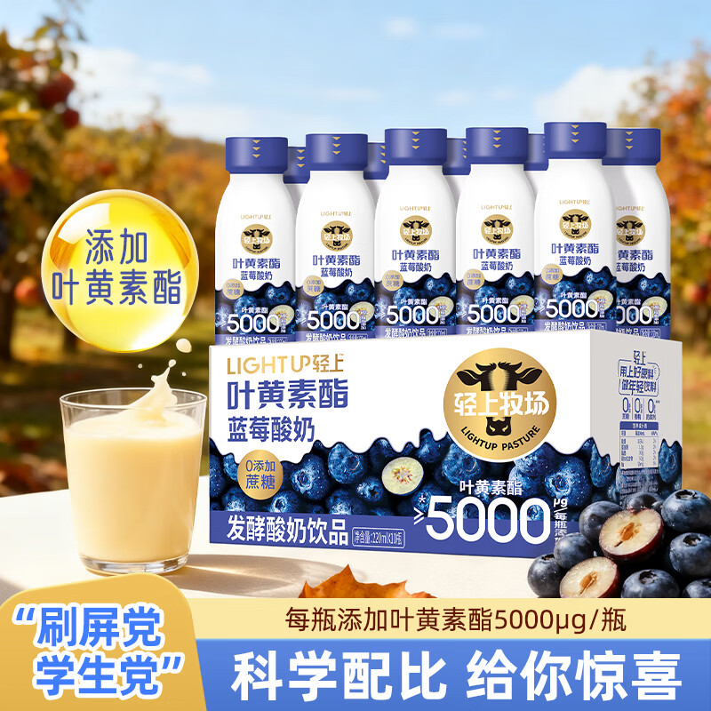 自营轻上叶黄素酯蓝莓酸奶10瓶装,到手价35.1元