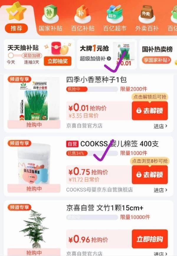 京东百亿补贴:1元抢400支婴儿棉签,手慢无!