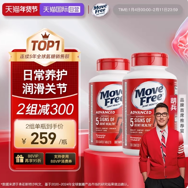 291.6元!益节 维骨力 氨糖软骨素 红瓶 200粒*2瓶