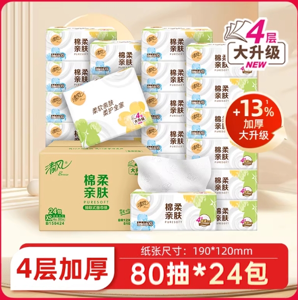 14.4元包邮!清风 原木纯品金装系列 抽纸 80抽*24包