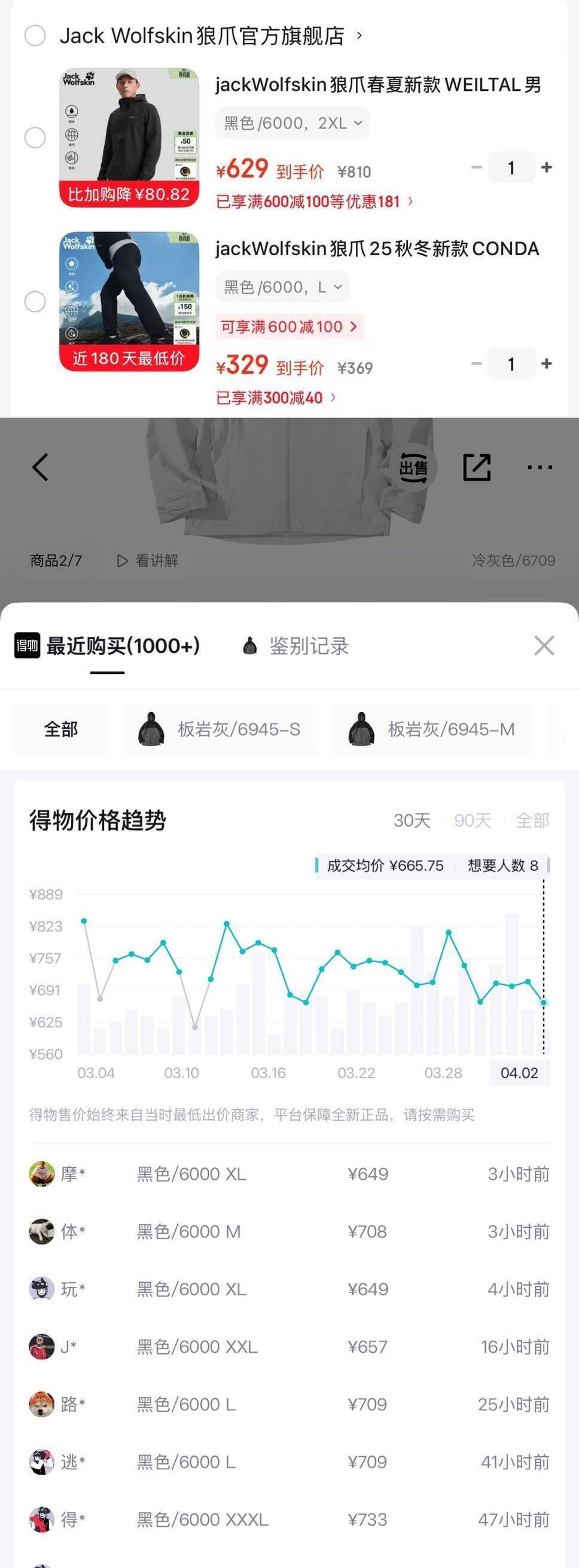 狼爪软壳夹克购物金597元,得物价719元
