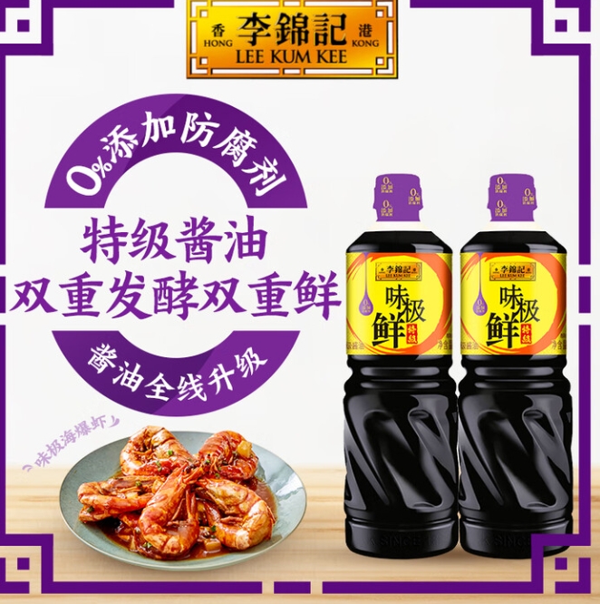 9.9元!李锦记味极鲜1.2kg*2