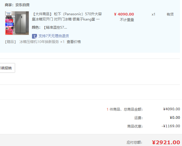 目前售价4090元,PLUS领取2000-160巻,标题下领取300享9折优惠券,叠加200-30元京帖,实付2921元包邮。