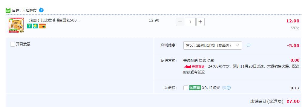 售价12.9元,领取5元优惠券,到手实付7.9元;